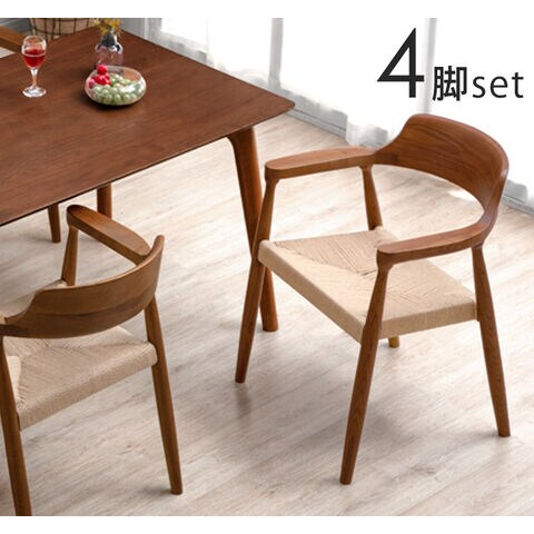 【4脚セット】 天然木 アッシュ ダイニングチェア 完成品 無垢材 ダイニング リビングチェア リビングチェアー ダイニングチェアー チェア アームチェア イス 椅子 チェア 80500111〔ブラウン(座面:ペーパーコード)〕【予約】4月下旬※4/30までに出荷予定