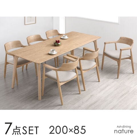 ALL天然木アッシュ ダイニングセット 6人掛け 肘付き チェア 7点セット 200cm テーブル ダイニングテーブルセット ダイニング ダイニングテーブル 7点 北欧 玄関渡し【超大型】 99901164〔ナチュラル(布座面:ベージュ)〕【予約】4月上旬※4/10までに出荷予定