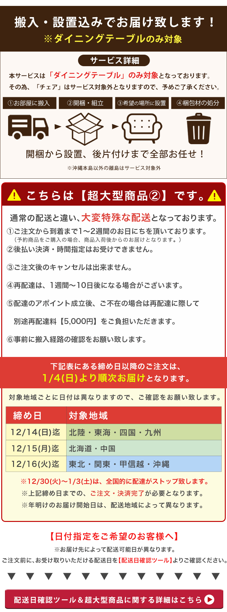こちらは(搬入設置込み:テーブルのみ)の販売ページです