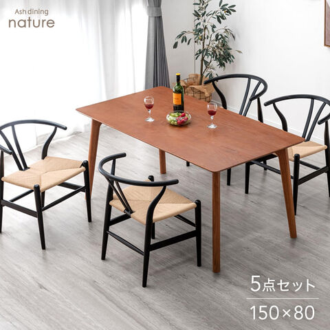 北欧モダン ダイニングテーブルセット 4人掛け 5点セット 150cm 天然木アッシュ ダイニングセット 【超大型】【後払/時間指定NG】 〔ブラウン×ブラック〕80500029【予約】3月下旬※3/31までに出荷予定