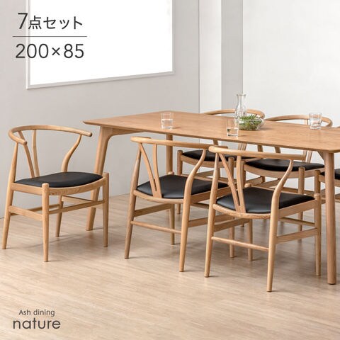 アッシュ天然木を使用した 北欧モダンダイニング 7点セット テーブル ・一枚板のような高級感を演出する“横はぎ集成材”天板 ・傷や凹みに強くより長く使えるアッシュ材 ・すっきりとしたテーパー脚 ・幕板なしで脚元広々 チェア ・美しいアーチが特徴的なデザイン ・滑らかな曲線が身体にフィット ・高い快適性 / 耐久性を実現した完成品 ・選べる張地2タイプ PVCレザー or ペーパーコード |