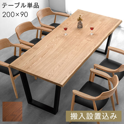 【搬入設置込み】天然木 ダイニングテーブル 6人掛け 200cm テーブル テーブルのみ 単品 長方形 ダイニングテーブル 6人 食卓テーブル 木製 黒脚 アッシュ 北欧 おしゃれ 食卓 ダイニング 玄関渡し 【超大型】 99901148〔ナチュラル〕【予約】1月中旬※1/20までに出荷予定