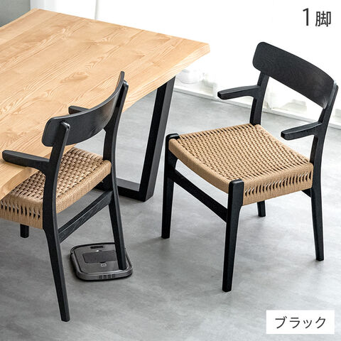 【即納】 お掃除ロボット対応 北欧 ダイニングチェア 完成品 アッシュ 1脚 単品 無垢材 肘付き 肘付 ハンギング ハーフアーム ダイニング チェア ダイニングチェアー 店舗用 いす 椅子 イス 木製 ペーパーコード 80500075〔ブラック〕