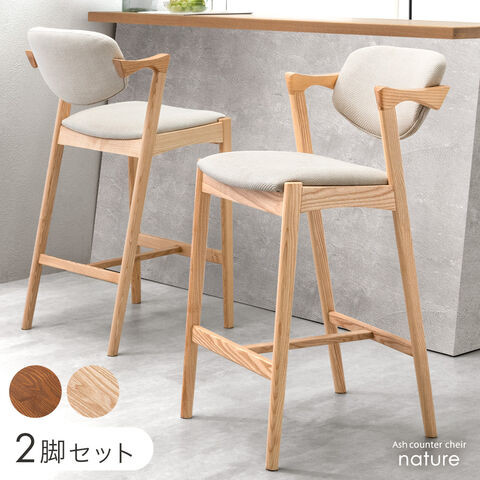 天然木アッシュ カウンターチェア 完成品 2脚セット 背もたれ 肘付 バーチェア カウンタースツール ハイチェア ハイスツール 椅子 イス チェア 木製 カフェ カウンター おしゃれ 北欧 99900410〔ナチュラル〕【予約】1月中旬※1/20までに出荷予定