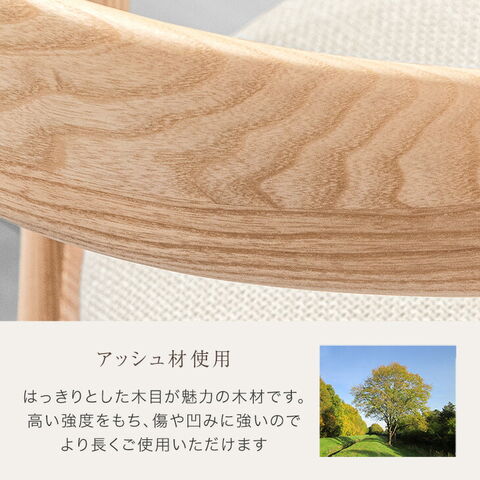 【フレーム】アッシュ無垢材〔ラッカー塗装〕、スチール〔粉体塗装〕 【張地】 ナチュラル(布座面:ベージュ):ファブリック(ポリエステル100%)〔撥水加工済〕 ブラウン(PVC座面:ブラック):PVCレザー 【中材】ウレタンフォーム |