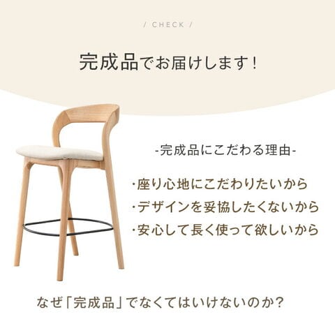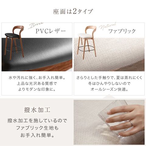・温もり感じる天然木アッシュカウンターチェア ・美しいカーブが印象的な曲木の背もたれ ・丸みを帯びた背もたれが身体にフィット ・長時間座っても快適なクッション座面 ・張地は2タイプ ┗サッと拭くだけお手入れ簡単PVCレザー ┗年中さらっと快適ファブリック生地 ・便利なフットレスト付き ・高い快適性 / 耐久性を実現した完成品 |