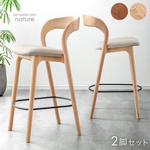 天然木アッシュ 曲木 カウンターチェア 完成品 2脚セット 背もたれ付き バーチェア カウンタースツール ハイチェア ハイスツール チェア 木製 ウッド カフェ キッチン おしゃれ 北欧 99900411〔ナチュラル〕【予約】1月中旬※1/20までに出荷予定