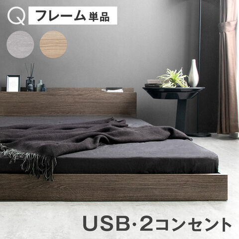 ローベッド クイーン フレーム 単品 USB・2コンセント&スマホスタンド付 フロアベッド ベッド ベット ベッドフレーム 81200032 〔グレイッシュウッド〕【予約】12月下旬※12/31までに出荷予定
