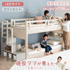 宮付き 二段ベッド 照明 コンセント付き シングル キング 対応 ロータイプ コンパクト スリム 分離 分割 子供ベッド 2段ベット 二段 ベッド 二段ベット 木製 子供 キッズ おしゃれ 【超大型】 81200026〔シャビーアッシュ×ホワイト〕