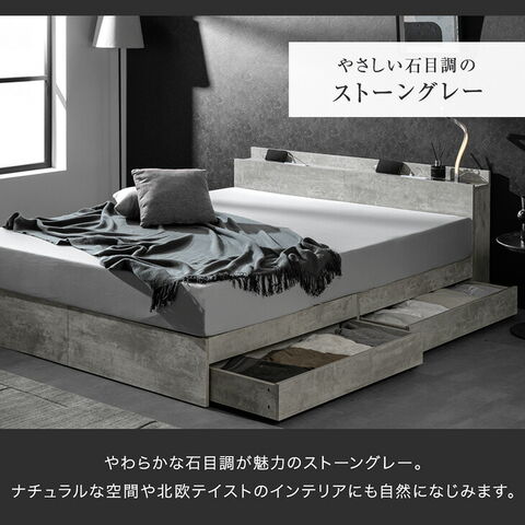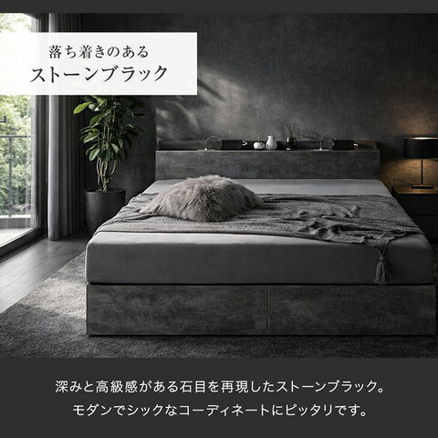 収納ベッド クイーン USB コンセント付き 宮付き 収納付き 収納ベットすのこ すのこベッド ベッドフレーム ベッド ベット フレーム 木製 北欧 おしゃれ 81200042〔ストーンブラック〕【予約】4月中旬※4/20までに出荷予定