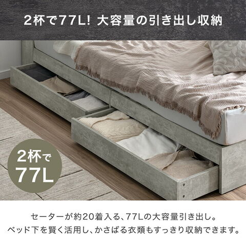 ・たっぷり77Lの引き出し収納 ・スーツケースや長物もしまえるオープン収納 ・開閉ラクラクキャスター付き ・お部屋に合わせて左右変換OK ・オールシーズン快適すのこ ・左右それぞれUSB+2口コンセント付き |
