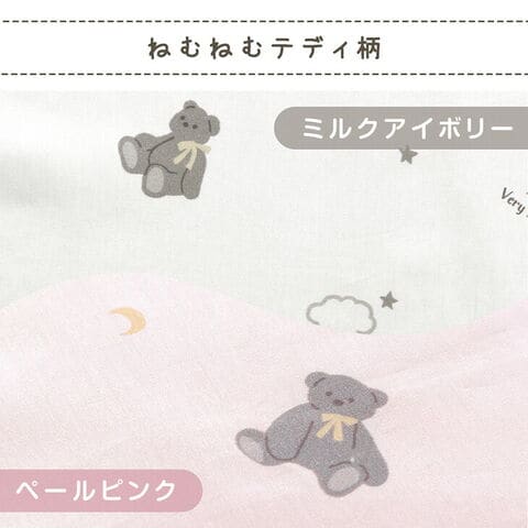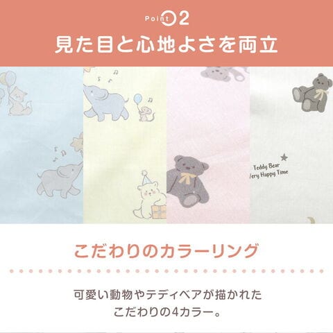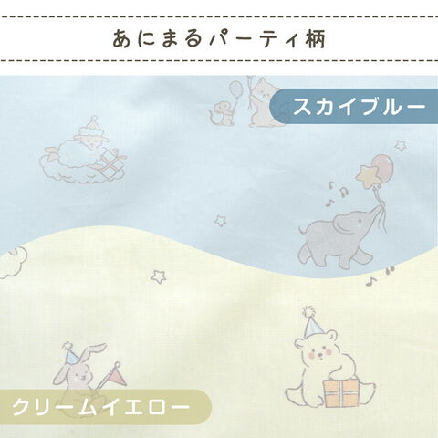 【あにまるパーティ柄】スカイブルー、クリームイエロー 【ねむねむテディ柄】ペールピンク、ミルクアイボリー |