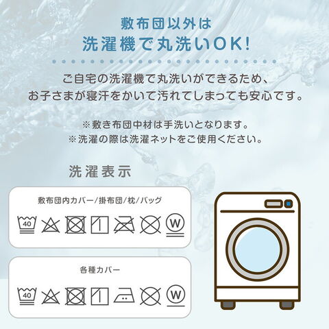・カバーは洗濯表示をご確認の上、洗濯ネットに入れ40℃以下の弱モードで洗濯してください。 ・本体は手洗いでお洗濯してください。 |