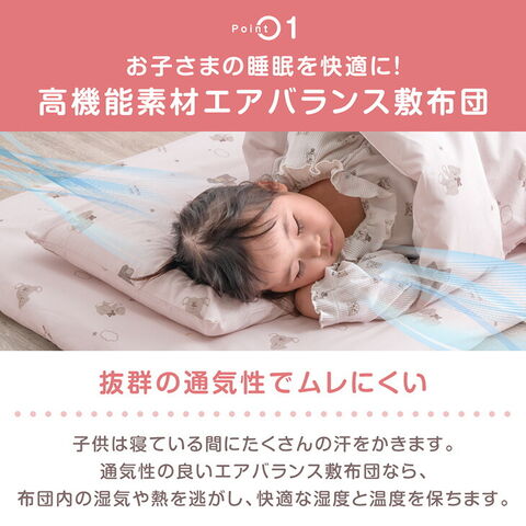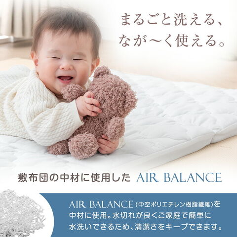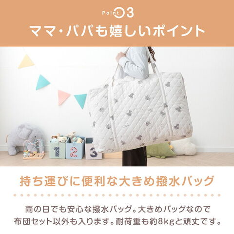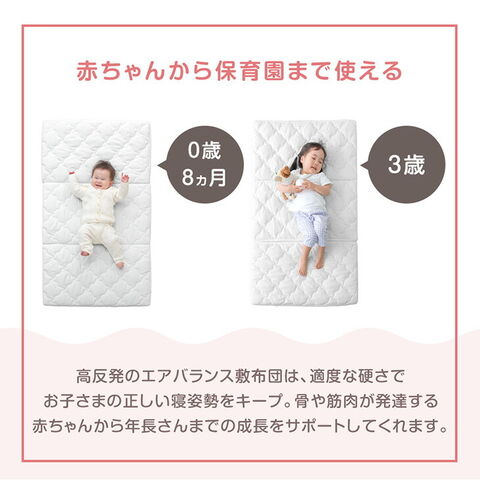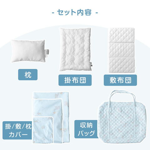 まるごと洗えるエアバランスお昼寝布団7点セット ・お子様の成長をサポートする高反発 ・ムレにくい抜群の通気性 ・すぐに乾くからお手入れラクラク ・子供の肌に優しい綿100% ・持ち運びに便利な大きめ撥水バッグ ・7点ぜんぶにネームタグ付き ・安心の低ホルムアルデヒド ・扱いやすい三つ折り仕様 |