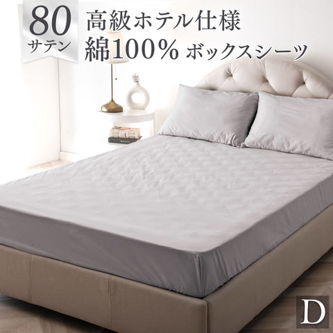 80サテン 綿100% ボックスシーツ 超長綿 高密度 防ダニ ダブル 140 × 200 高級ホテル仕様 洗える マットレス カバー 81900113〔ライラックグレー〕【予約】2月上旬※2/10までに出荷予定
