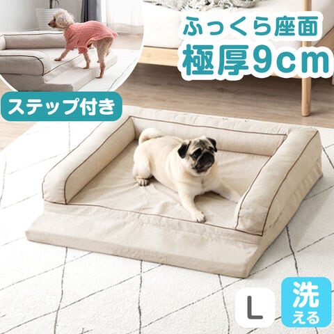 【即納】 【Lサイズ】ペットベッド 洗える カバー 高反発 犬 猫 洗濯機対応 ペット 介護ベッド 極厚 防水 ソファベッド ペットベット 階段 シニア オールシーズン 滑り止め ベッド ふわふわ 81900188〔エクルベージュ〕