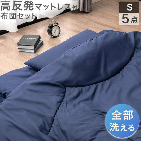全部洗える 高反発マットレス付 布団セット シングル 5点セット 抗菌 防臭 洗える 洗濯 マットレス マットレス付き 布団 敷布団 掛け布団 枕 収納ケース 組布団 新生活 8190016212〔ネイビー〕