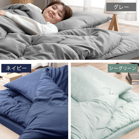 | 【サイズ】 シングル:150x長さ210cm セミダブル:幅170x長さ210cm ダブル:幅190x長さ210cm 【素材】 生地:ポリエステル100% 無地ピーチスキン加工、不織布付き抗菌防臭加工 詰め物:ポリエステル100% [詰め物重量]シングル:約1.1kg、セミダブル:約1.3kg、ダブル:約1.5kg |