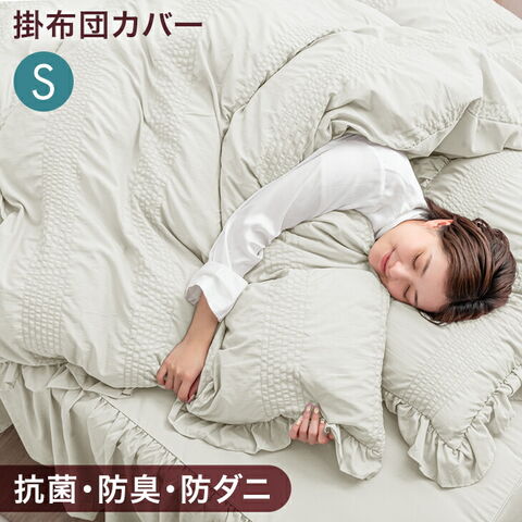・かわいいフリルデザインが寝室を華やかに ・おしゃれ&皺が目立ちにくい くしゅくしゅデザイン ・いつでも清潔 抗菌・防臭・防ダニ加工 ・ピーチスキン加工で肌触りなめらか ・お子様にも安心の低ホルムアルデヒド仕様 ・お洗濯OK |