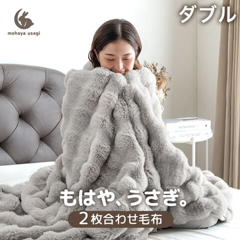 もはや、うさぎ。 あったか 2枚合わせ 毛布 ダブル 洗える エアロゲル ブランケット 二枚合わせ 暖かい 掛け毛布 掛布団 冬用 厚手 ふわふわ おしゃれ 81900203〔パウダーグレー〕