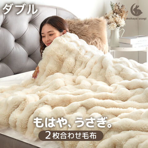 もはや、うさぎ。 あったか 2枚合わせ 毛布 ダブル 洗える エアロゲル ブランケット 二枚合わせ 暖かい 掛け毛布 掛布団 冬用 厚手 ふわふわ おしゃれ 81900203〔クリームアイボリー〕