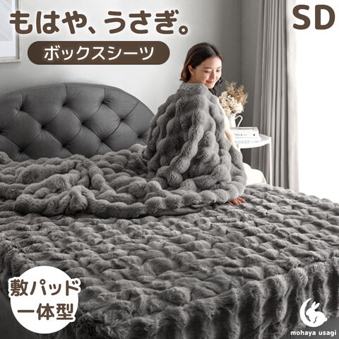 もはや、うさぎ。 敷パッド一体型 ボックスシーツ セミダブル 洗える 暖かい 一体型ボックスシーツ 敷パッド ベッドシーツ もこもこ ふわふわ 冬用 81900206〔チャコールグレー〕【予約】12月下旬※12/31までに出荷予定