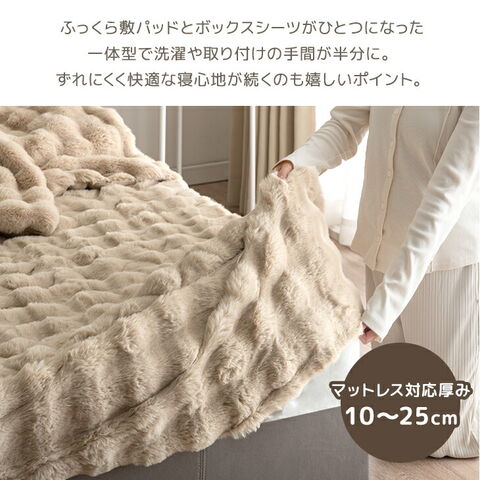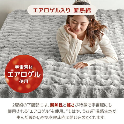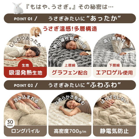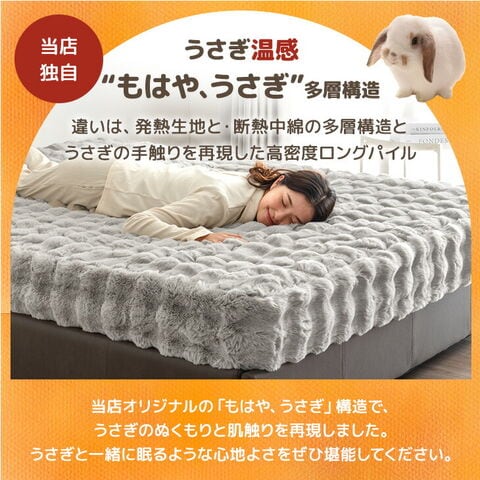 ふわもこあったか “もはやうさぎ”な 敷パッド一体型ボックスシーツ □“もはやうさぎ”なあったかさ ・あったか吸湿発熱生地 ・優れた断熱性のエアロゲル入り綿 ・さらに優れた熱伝導であったか グラフェン配合 □“もはやうさぎ”な手触り ・なめらかさを生む高密度700g/m2 ・肌乾燥や静電気を防ぐしっとり高保湿の椿オイル加工 □“もはやうさぎ”な見た目 ・ぽこぽことした立体感がかわいいデザイン ■ふっくら気持ちいい敷パッド一体型 ■取り付けらくらく 全周ゴム仕様 ■世界基準の安心 エコテックス認証 ■洗濯機で丸洗いOK |