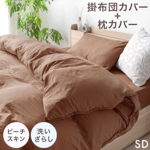 【即納】 洗いざらし 掛け布団カバー セミダブル+枕カバー1枚 ピーチスキン 水洗い加工 洗える 掛布団カバー 掛ふとんカバー 布団カバー 掛けカバー 掛け布団 おしゃれ 81900235〔モカブラウン〕