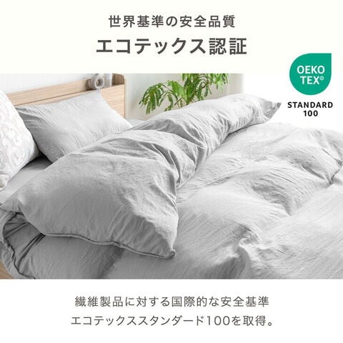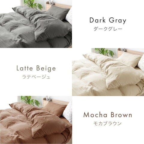・自然なシワ感を生む洗いざらし加工 ・なめらかな肌触りのピーチスキン加工 ・いつでも清潔!抗菌・防臭・防カビ・防ダニ加工 ・お子さまにも安心の低ホル ・取り付け簡単U字ファスナー ・布団ズレ防止8か所スナップボタン |