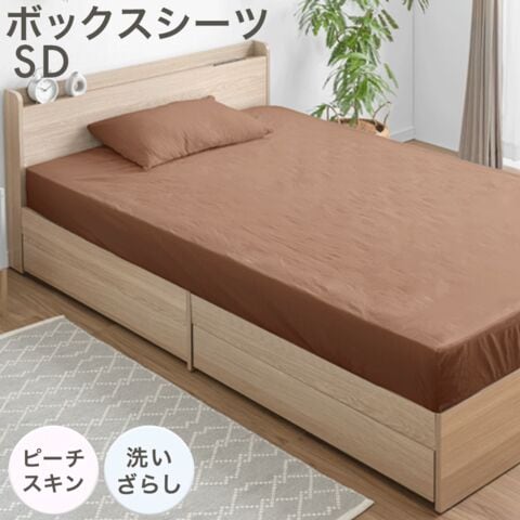 洗いざらし ボックスシーツ セミダブル ピーチスキン 水洗い加工 マットレスカバー ベッドシーツ 寝具カバー 敷きカバー 抗菌 防臭 防ダニ 洗える おしゃれ 81900230〔モカブラウン〕