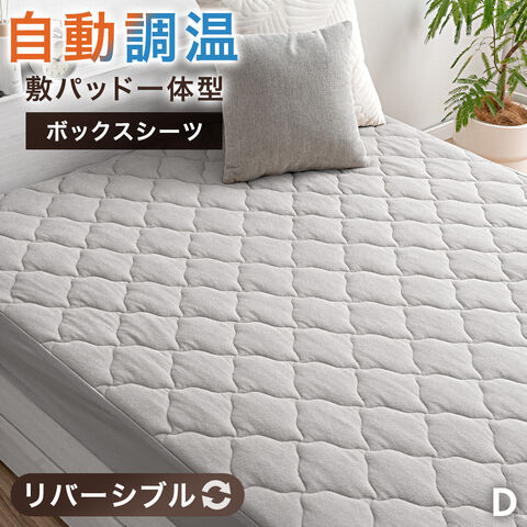 【即納】 【新発売プライス】 自動調温 敷パッド一体型 ボックスシーツ ダブル 抗菌 防臭 調温 調湿 洗える パッド一体型ボックスシーツ 敷きパッド 敷パッド ベッドカバー ベッドパッド ベッドシーツ マットレスカバー 温度調節 81900239〔ミストグレー〕