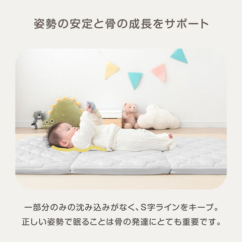 洗える ベビーマットレス 三つ折り 120×70 敷布団 ベビーマット ベビー布団 ベッド お昼寝マット 布団 ベビー 子供 保育園 高反発 厚手 固め 軽量 折り畳み 持ち運び 81901010〔グレー〕