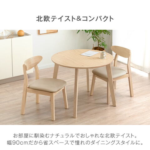 ・コンパクトな円形テーブル90cm ・天然木の表情を楽しめる突板天板 |