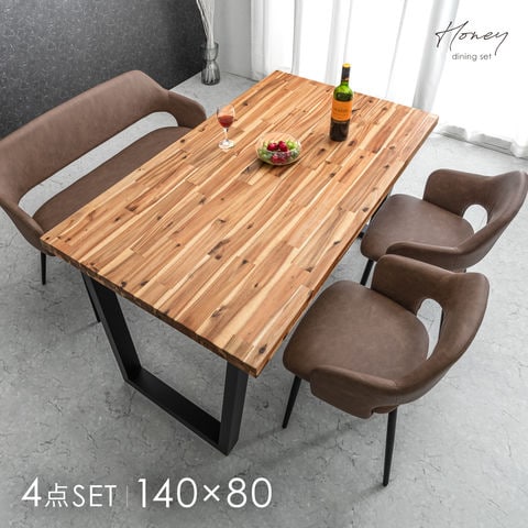 天然木 ダイニングセット 4人掛け 4点セット ベンチ 背もたれ ダイニングテーブル 140cm テーブル 長方形 ダイニングテーブルセット 【超大型】 82110004〔ナチュラル【チェア:オールドブラウン】〕【予約】2月上旬※2/10までに出荷予定