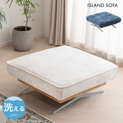 オットマン 洗える カバーリング 足置き スツール ゆったり 1人掛け アイランドソファー アイランド ソファ リビングソファ ソファー ロータイプ 脚 取り外し ファブリック 天然木 【超大型】82500021〔アイボリー〕