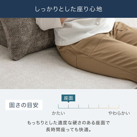 | 素材 | 張地:ポリエステル100% 中材:シリコンフィル、ウレタンフォーム、Sバネ、ウェービングベルト フレーム:天然木 脚:スチール ロータイプ脚:樹脂 |