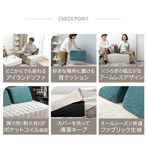 組み合わせ、レイアウト、使い方自在。 アイランドユニットソファ - liberty - ・360°どこからでも座れるアイランドソファ ・好きな場所に配置できる背もたれ ・モダン&実用性に優れたミニマルデザイン ・ライフステージに合わせて追加/買い替えOK ・座り心地/耐久性UP ポケットコイル座面 ・ゆったりくつろげるひろびろ設計 ・カバーを洗って清潔キープ ・オールシーズン快適ファブリック生地 ・スピード配送&日時指定OK!コンパクト梱包 |