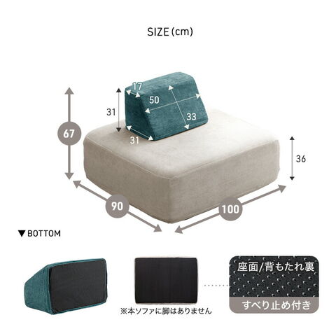 【即納】 アイランドソファ 洗える カバーリング ポケットコイル 幅100 ユニットソファ アイランドソファー ソファー カバー sofa 背もたれクッション 1人掛け 1人用 北欧 おしゃれ 82500039〔ピーコックブルー〕