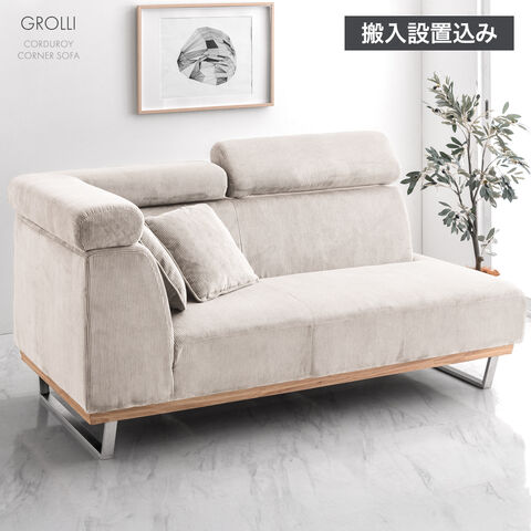 【搬入設置込み】コーデュロイ カウチソファ 2人掛け ヘッド リクライニング クッション 2個付き ソファ ソファー カウチソファー コーデュロイソファ 2P 2人掛 布地 モダン おしゃれ 99901229〔ペールベージュ:右肘タイプ〕