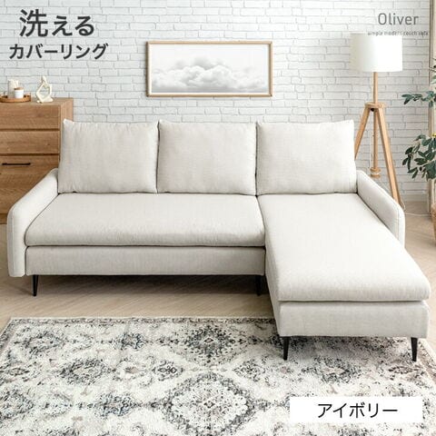 【即納】 フルカバーリング カウチソファ 洗える 左右変換OK お掃除ロボ対応 カウチ ソファ コーナーソファ ローソファ ロータイプ 洗えるカバー 3人掛け 2人掛け L字 おしゃれ 82500109〔アイボリー〕