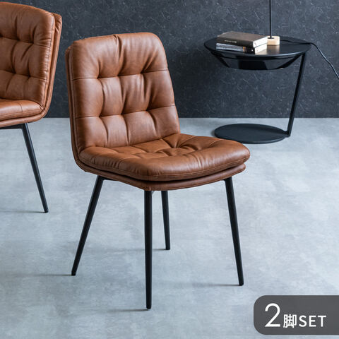 【即納】 【2脚セット】ヴィンテージモダン ダイニングチェア チェア ダイニングチェアー ダイニング チェアー 椅子 イス レザー 食卓椅子 スチール PUレザー リビングチェア 2脚 セット おしゃれ リビング ヴィンテージ 83200004 〔レトロキャメル〕
