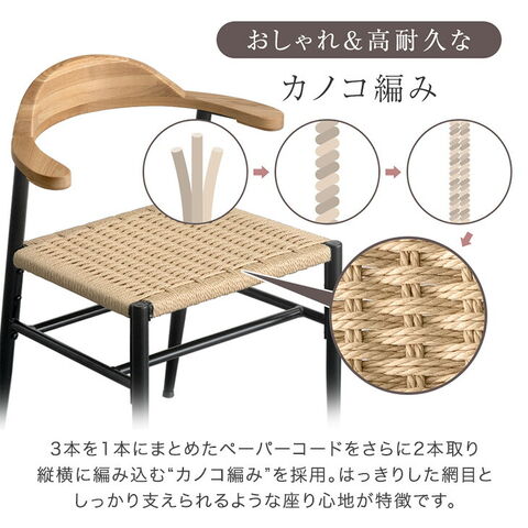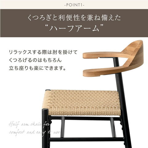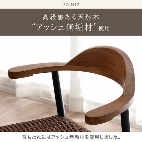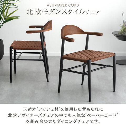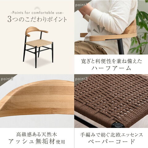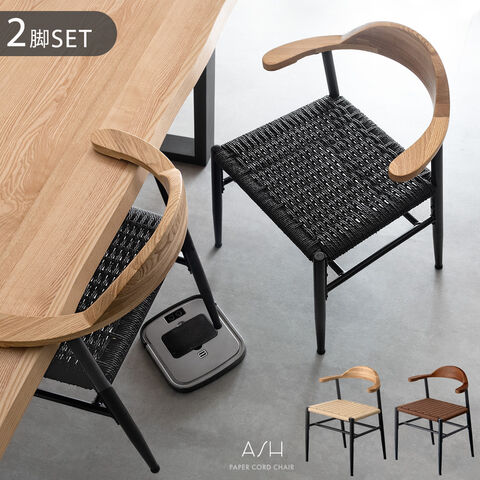 【即納】 お掃除ロボ対応 アッシュ ペーパーコード ダイニングチェア 2脚セット 天然木 ハンギング ハーフアーム 肘付き ダイニング チェア ダイニング 椅子 木製 無垢材 黒脚 北欧 おしゃれ 83200078〔ブラック〕