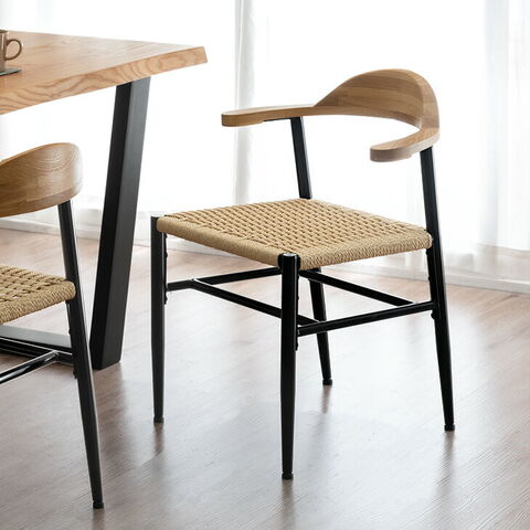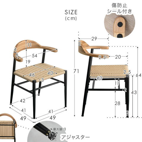 【即納】 お掃除ロボ対応 アッシュ ペーパーコード ダイニングチェア 2脚セット 天然木 ハンギング ハーフアーム 肘付き ダイニング チェア ダイニング 椅子 木製 無垢材 黒脚 北欧 おしゃれ 83200078〔ブラック〕のレビュー