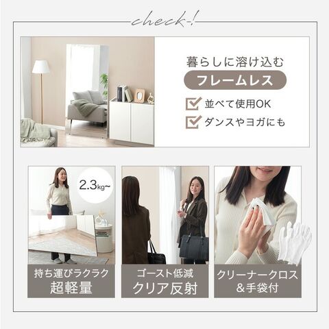 第1位 割れない全身鏡 フレームレス 高さ180cm 幅50cm 超 軽量 割れない鏡 割れない 鏡 ミラー 全身鏡 全身ミラー 姿見 全身 壁掛け フレーム無し 賃貸 フィルムミラー ダンス 180 180cm 子供 おしゃれ 【超大型】83800001