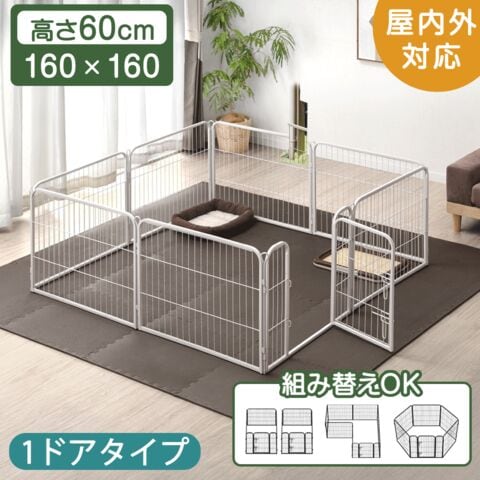 ペットサークル 屋内外兼用 組み替えOK 高さ 60cm 1ドアタイプ ワイド 大型 ペット サークル ドッグサークル 犬サークル ゲージ 83900000 〔ライトグレー〕