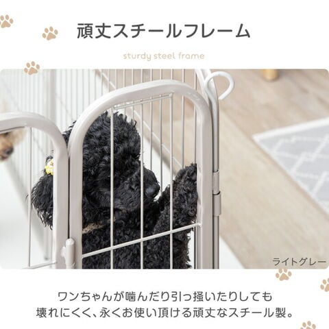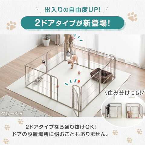 ・シニア犬も安心!段差が小さい安全設計 ・地面に固定できるので屋外使用もOK ・お部屋やペットの成長に合わせて組み替え可能 ・出入りの自由度が高い2ドアタイプ ・頑丈なスチールフレーム ・安心のダブルロック扉 |