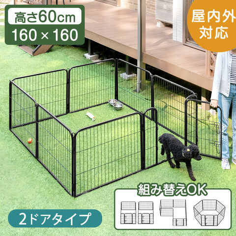 【即納】 ペットサークル 屋内外兼用 組み替えOK 高さ 60cm 2ドアタイプ ワイド 大型 ペット サークル ドッグサークル 犬サークル ゲージ 83900004〔ブラック〕