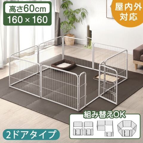 ・シニア犬も安心!段差が小さい安全設計 ・地面に固定できるので屋外使用もOK ・お部屋やペットの成長に合わせて組み替え可能 ・出入りの自由度が高い2ドアタイプ ・頑丈なスチールフレーム ・安心のダブルロック扉 |