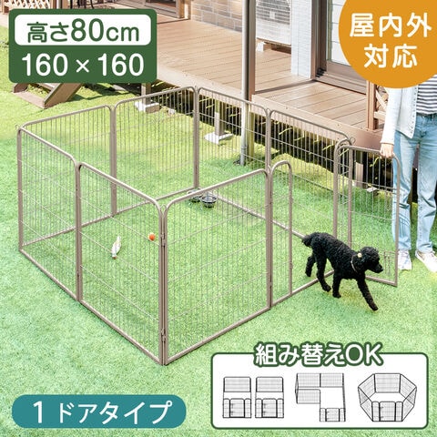 シニア犬も安心 バリアフリー ペットサークル 1ドア ハイタイプ 屋内外兼用 スチール 高さ 80cm ドア ロック ワイド ドッグ 83900001 〔グレージュ〕