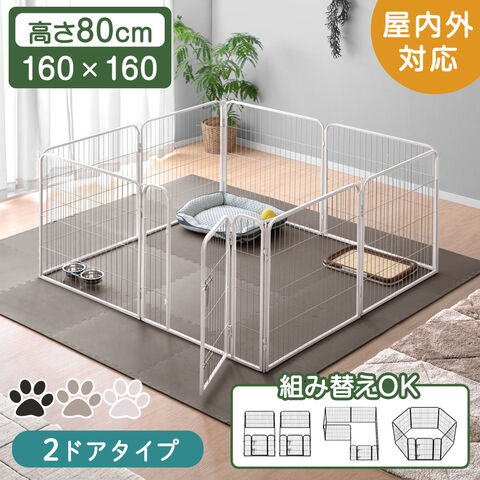 シニア犬も安心 バリアフリー ペットサークル 2ドア ハイタイプ 屋内外兼用 スチール 高さ 80cm ドア ロック ワイド ドッグ 83900005〔ライトグレー〕